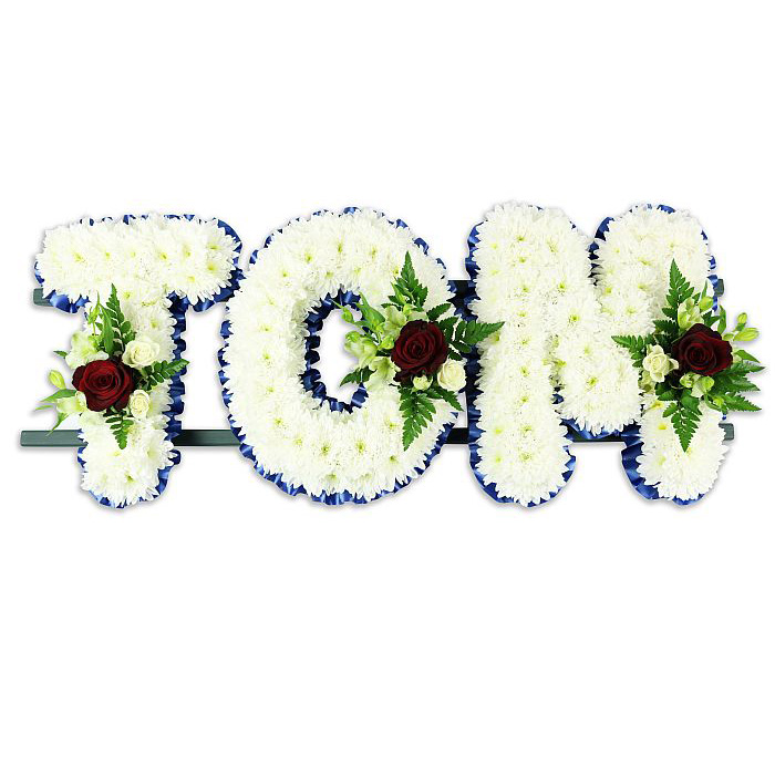 Express your deepest condolences with our stunning letter tribute bouquet, meticulously crafted to honor the memory of your loved one. This exquisite arrangement features a harmonious blend of white chrysanthemums, red roses, and white freesias, symbolizing purity, love, and remembrance.